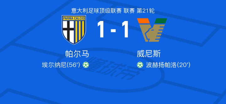 1月19日帕尔马vs威尼斯赛况及球员表现评分公布